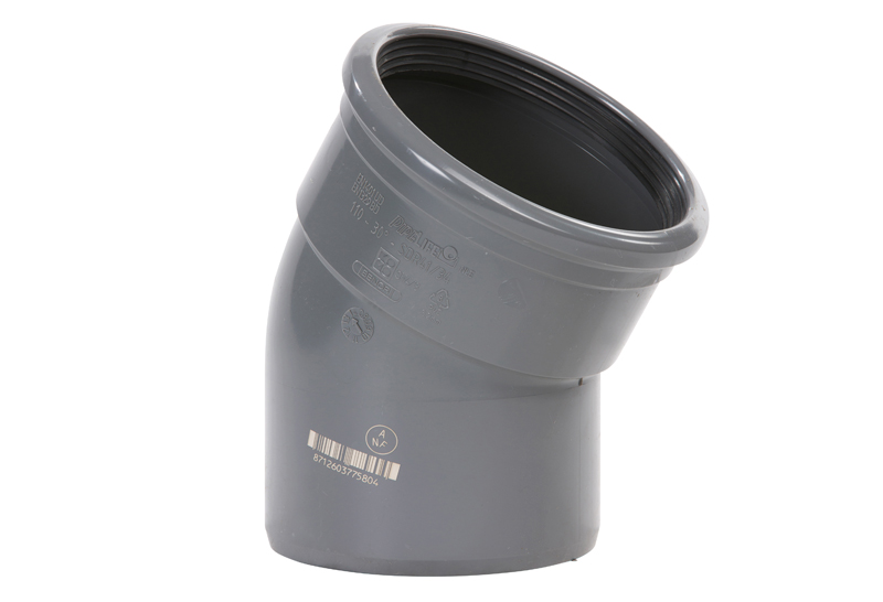 PVC bocht 30 graden manchet/spie 125mm