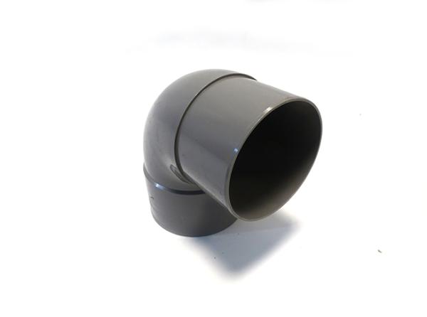 Een PVC bocht 90 graden lijmmof/spie 100 mm is een PVC-koppelstuk dat wordt gebruikt om een leiding van 100mm in een 90° hoek te laten afbuigen.