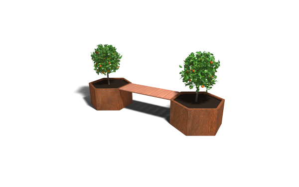 Cortenstaal plantenbak met bankje Zeshoek