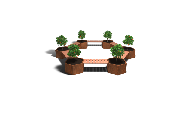 Cortenstaal plantenbak met bankje kampvuur opstelling