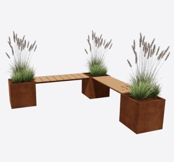 Cortenstaal Vegas Vierkant hoekopstelling met bodemplaat